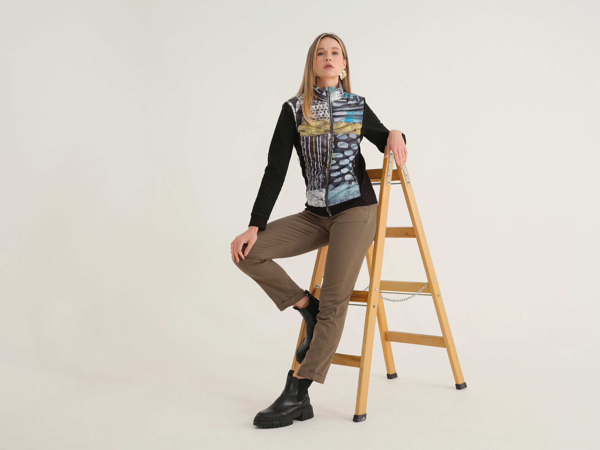PRECIOSA CHAQUETA DOLCEZZA DISEÑO ARTISTICO DE PINTOR( SHEREE BURLINGTON) QUEDA PRECIOSA PUESTA Y MUY ORIGINAL POR SU ESTAMPADO .